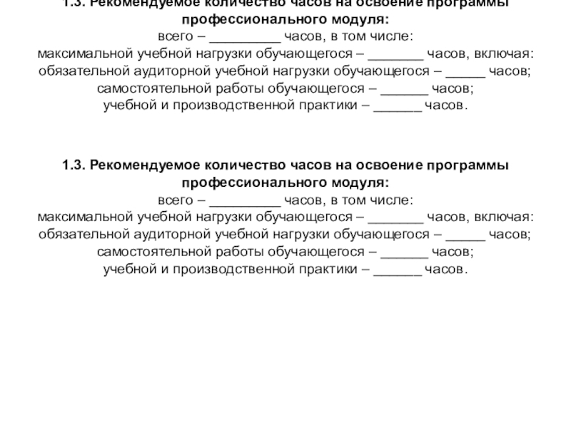1.3. Рекомендуемое количество часов на освоение программы профессионального модуля: