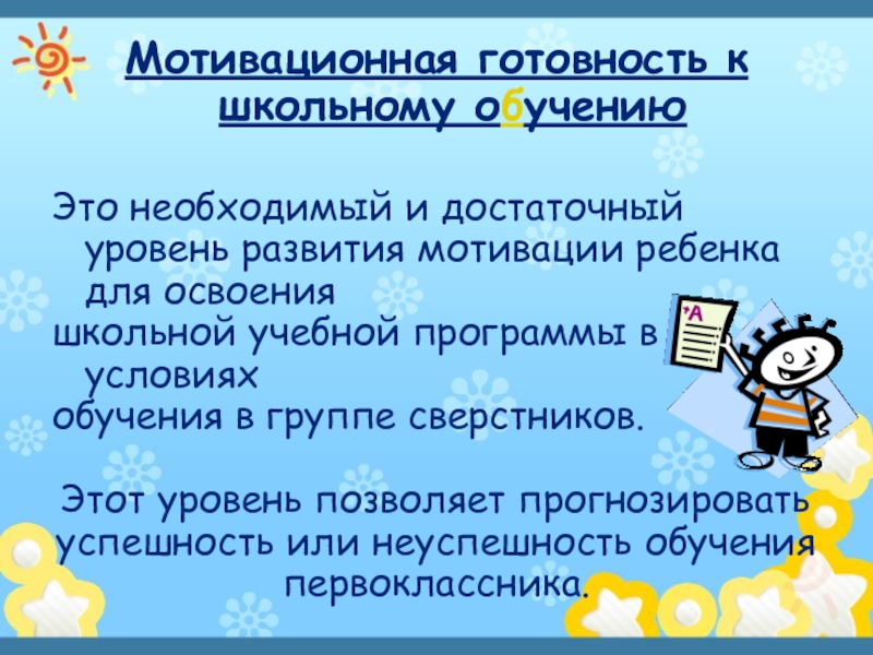 - Формирование мотивационной готовности к школе у старших дошкольников посредствам проектной деятельности.