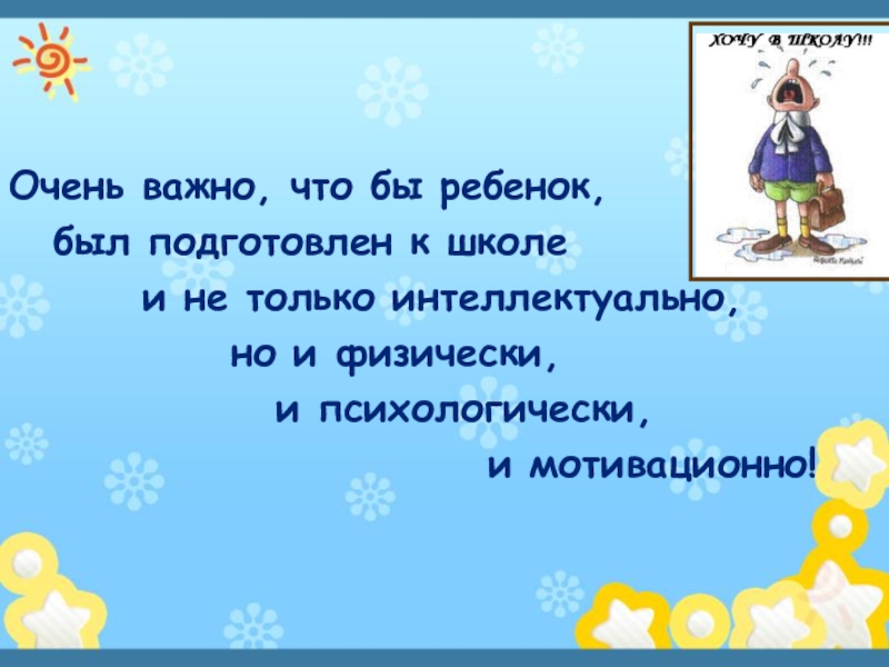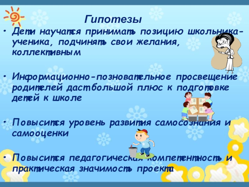 - Воспитание положительного отношения к школе и школьной мотивации у детей подготовительной группы и их родителей.