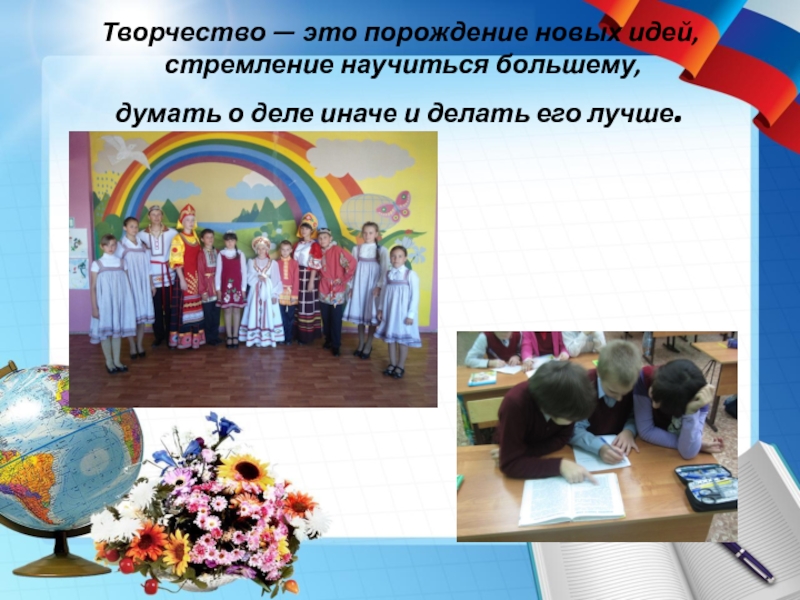 Творчество — это порождение новых идей, стремление научиться большему, думать о деле иначе и делать его лучше.
