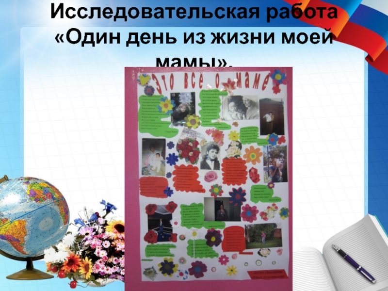Слайд 19Исследовательская работа «Один день из жизни моей мамы».