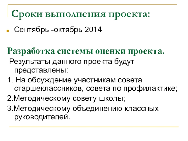 Слайд 9Сроки выполнения проекта: