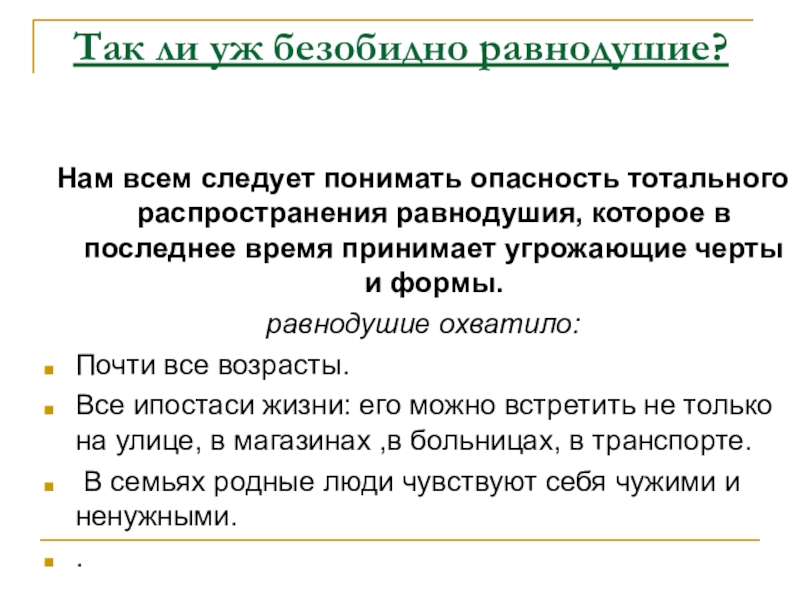 Слайд 4Так ли уж безобидно равнодушие?