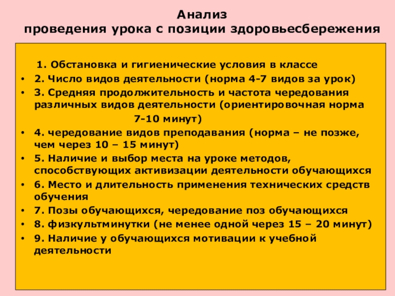 Слайд 1110. наличие в содержательной части урока вопросов, связанных со здоровьем, обеспечение