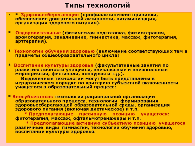 педагогические технологии, содействующие здоровью; технологии, формирующие здоровый образ жизни.