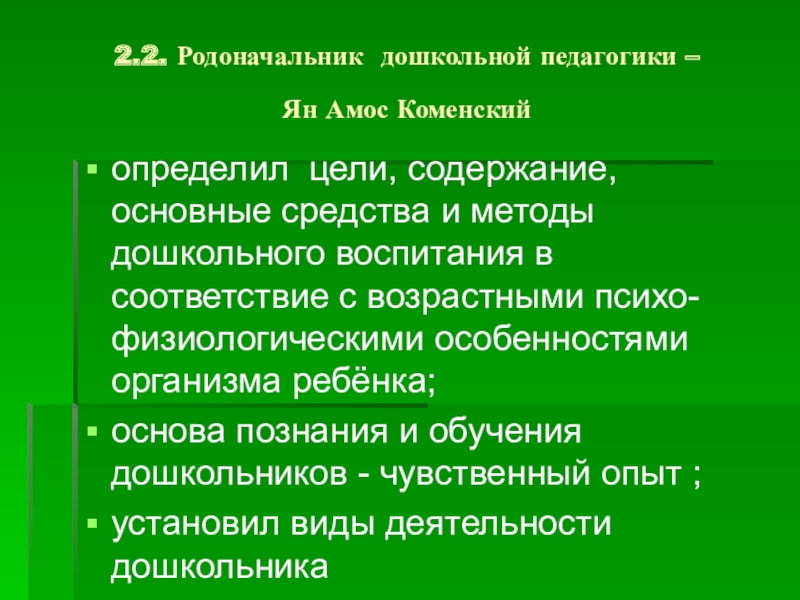 Слайд 122.2. Родоначальник дошкольной педагогики –
