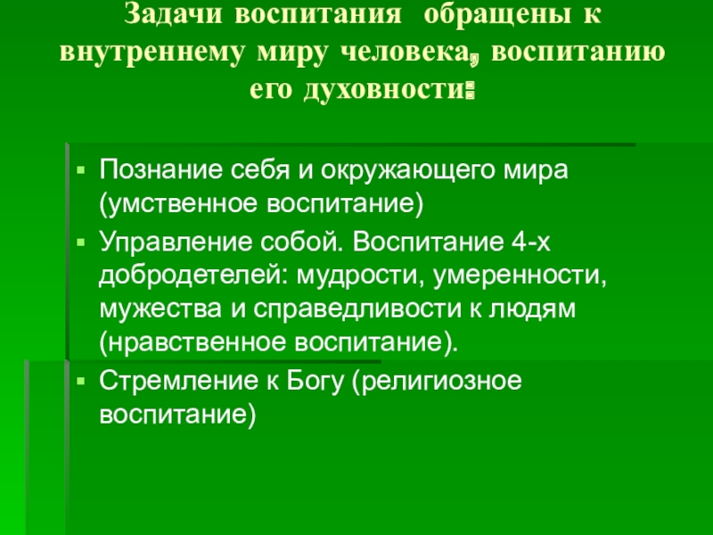 Слайд 7Задачи воспитания обращены к внутреннему миру человека, воспитанию его духовности: