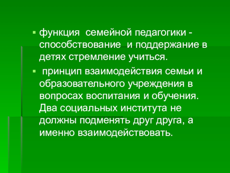 Слайд 14функция семейной педагогики -способствование и поддержание в детях стремление учиться.