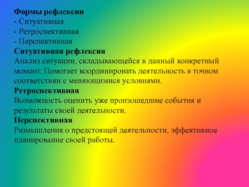 Возможность оценить уже произошедшие события и результаты своей деятельности.