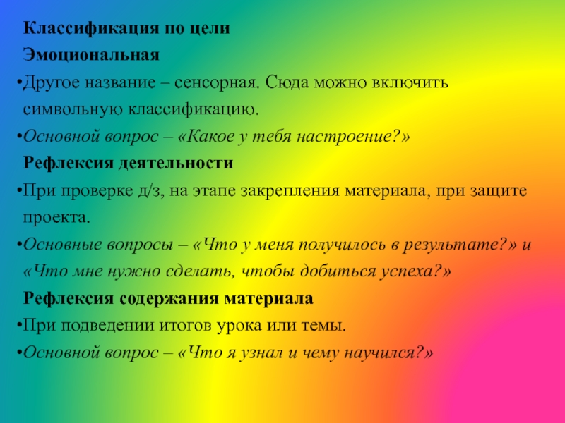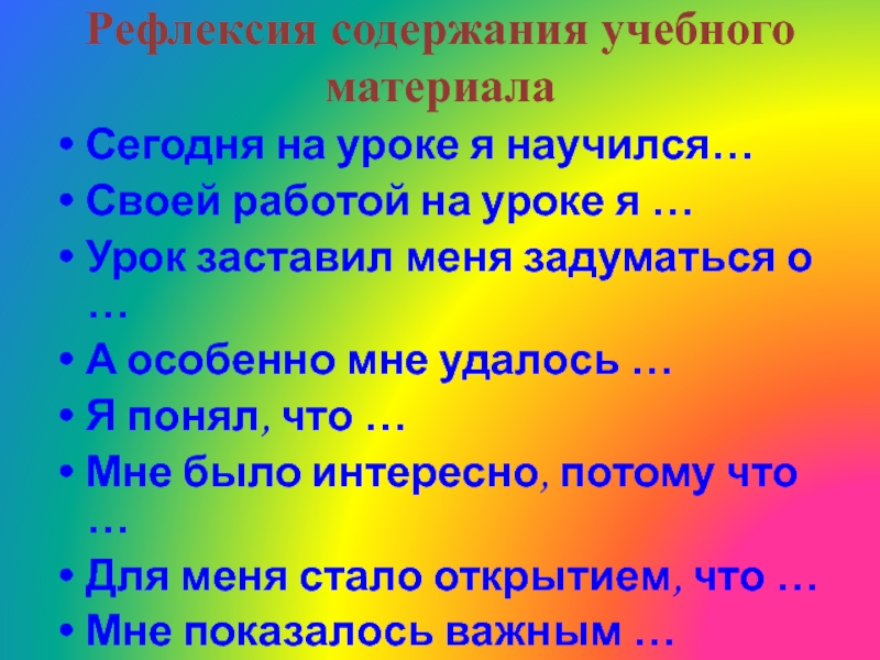 Этот вид рефлексии уместен на завершающем этапе изучения целого раздела учебного материала или большой темы.