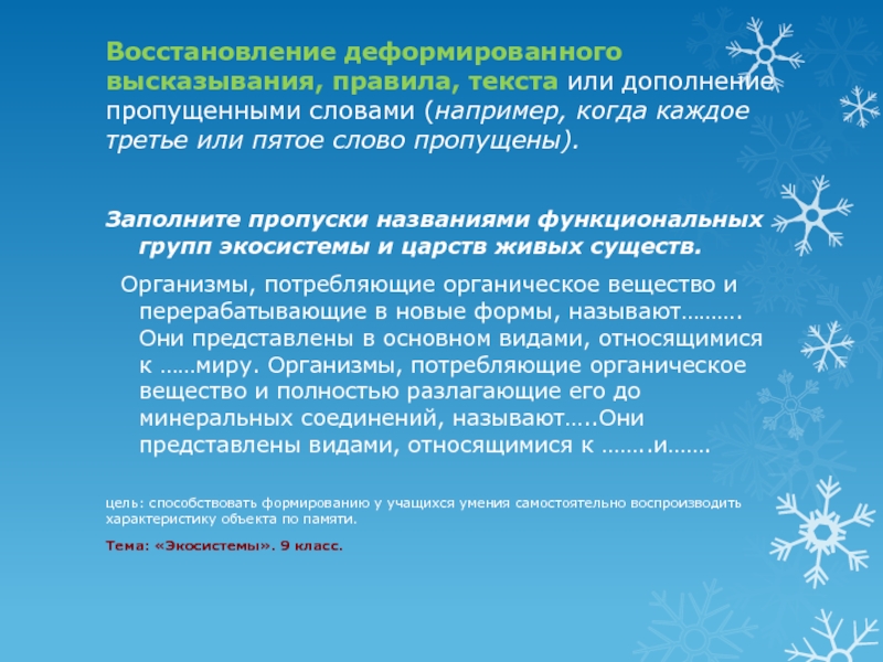 цель: способствовать формированию у учащихся умения самостоятельно воспроизводить характеристику объекта по памяти.