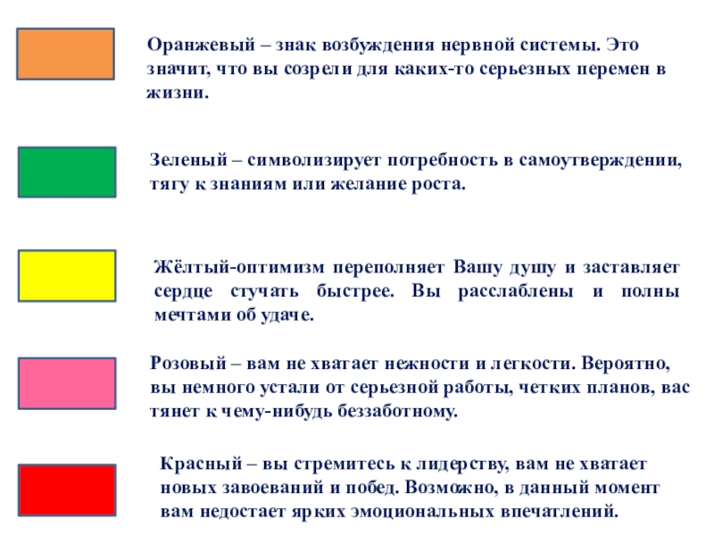 Оранжевый – знак возбуждения нервной системы. Это значит, что вы созрели для каких-то серьезных перемен в жизни.