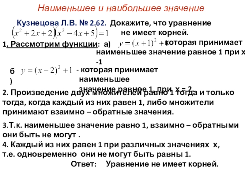 2. Произведение двух множителей равно 1 тогда и только тогда, когда каждый из них равен 1, либо множители принимают взаимно – обратные значения.