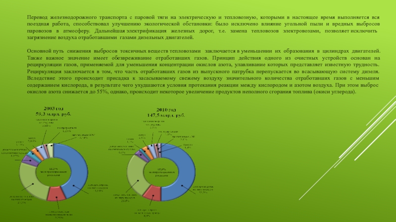 в настоящее время выполняется вся поездная работа, способствовал улучшению экологической обстановки: было исключено влияние угольной пыли и вредных выбросов паровозов в атмосферу. Дальнейшая электрификация железных дорог, т.е. замена тепловозов электровозами, позволяет исключить загрязнение воздуха отработавшими газами дизельных двигателей.