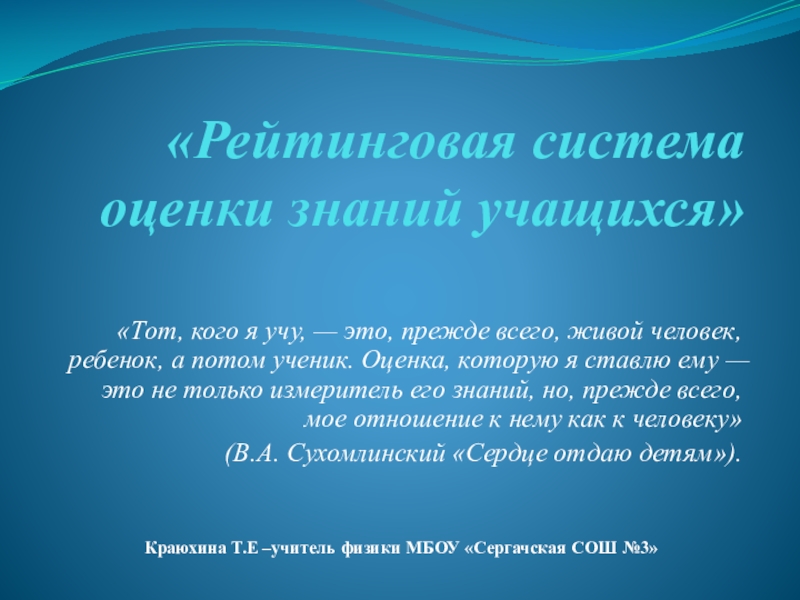 прежде всего, живой человек, ребенок, а потом ученик. Оценка, которую я ставлю ему — это не только измеритель его знаний, но, прежде всего, мое отношение к нему как к человеку»