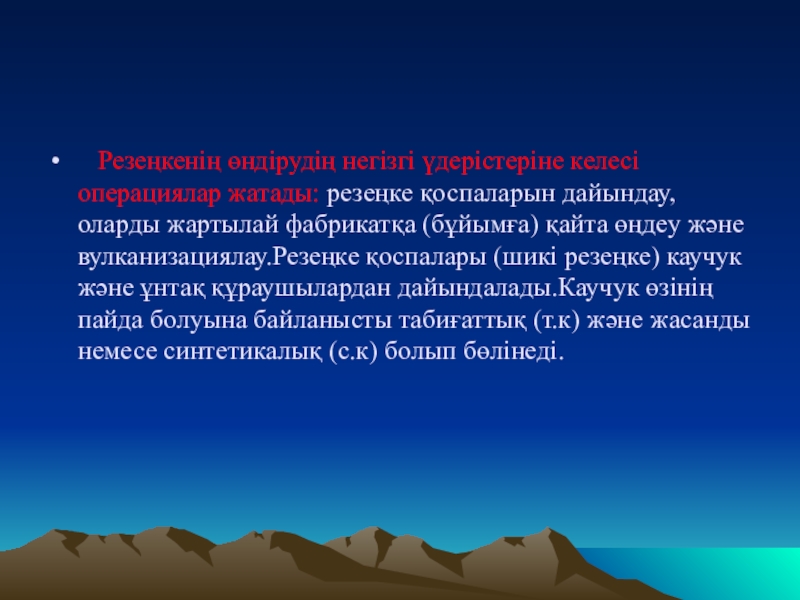 Слайд 3 Резеңкенің өндірудің негізгі үдерістеріне келесі операциялар жатады: резеңке қоспаларын