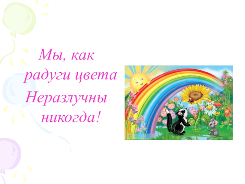 Мы, как радуги цветаНеразлучны никогда!
