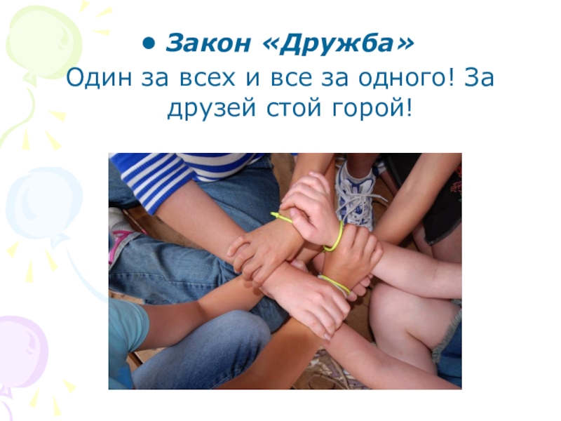 Закон «Дружба»Один за всех и все за одного! За друзей стой горой!