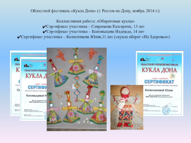 Областной фестиваль «Кукла Дона» (г. Ростов-на-Дону, 2014 ): участие.