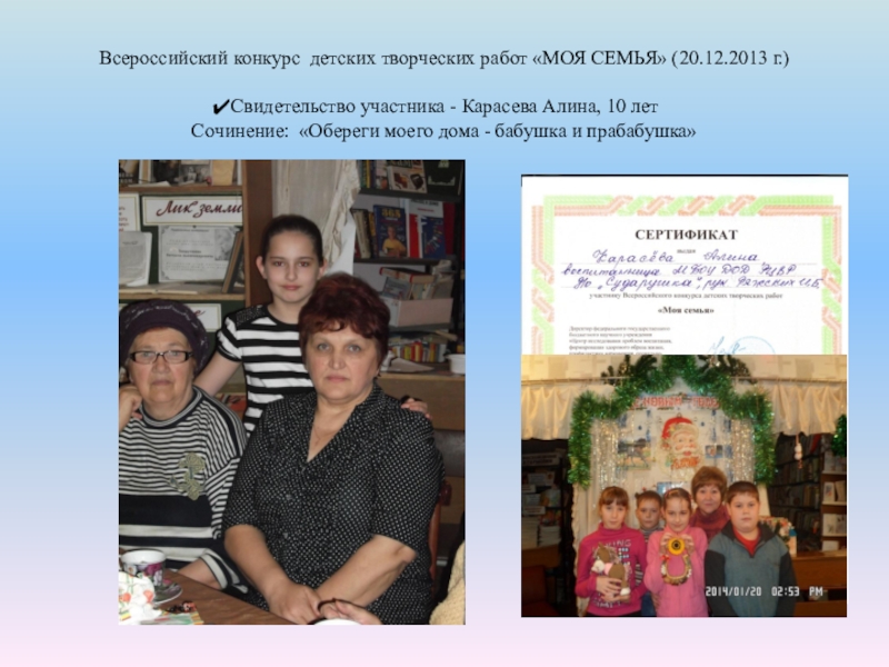 Всероссийский конкурс детских творческих работ «МОЯ СЕМЬЯ» (2013): участник.