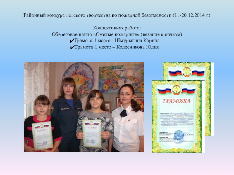 Районный конкурс детского творчества по пожарной безопасности (2014): 1 место.