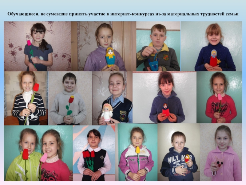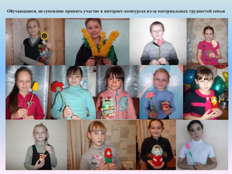Слайд 43Обучающиеся, не сумевшие принять участие в интернет-конкурсах из-за материальных трудностей семьи