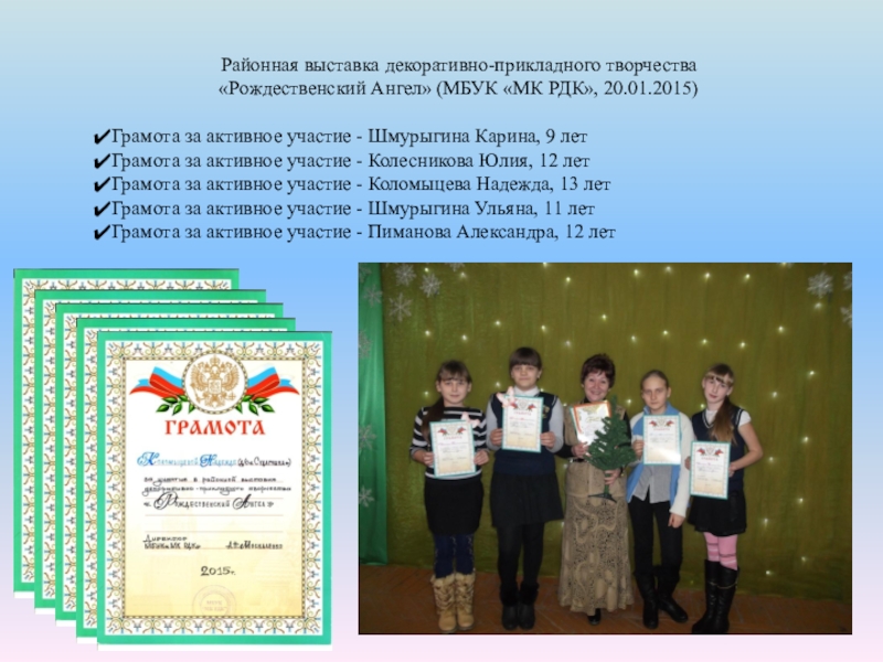 Слайд 4Районная выставка декоративно-прикладного творчества «Рождественский Ангел» (2015): участие.