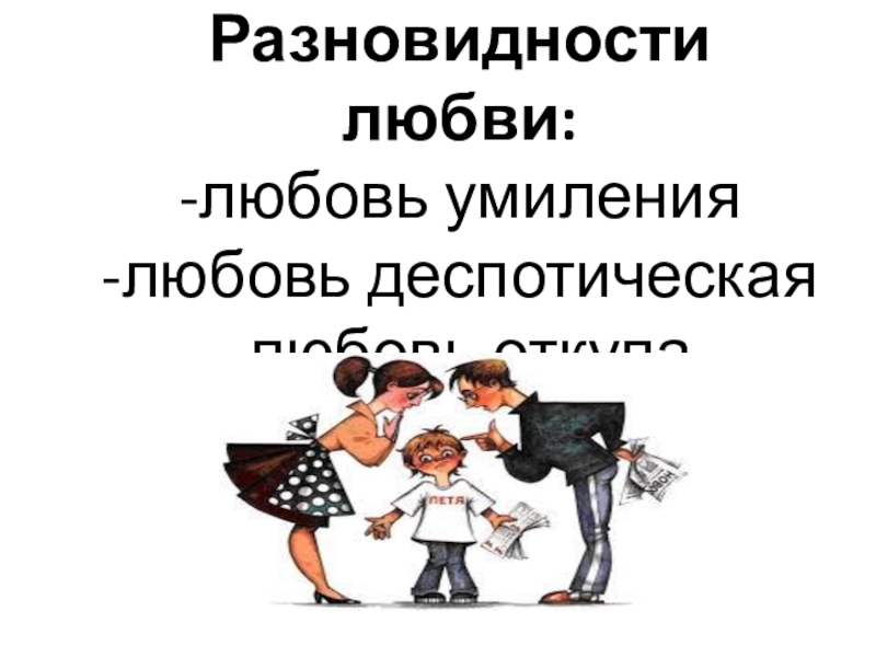 Разновидности любви: -любовь умиления -любовь деспотическая -любовь откупа