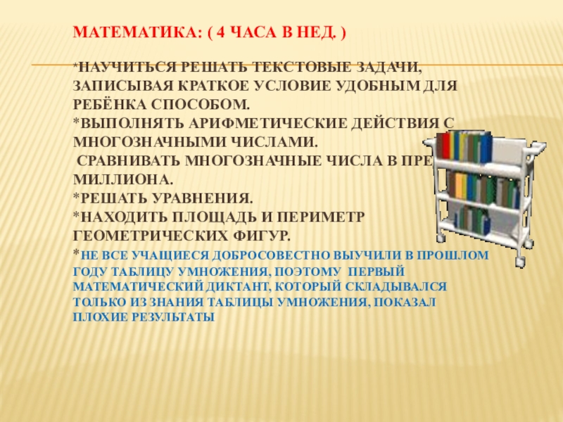 Слайд 19МАТЕМАТИКА: ( 4 часа в нед. )
