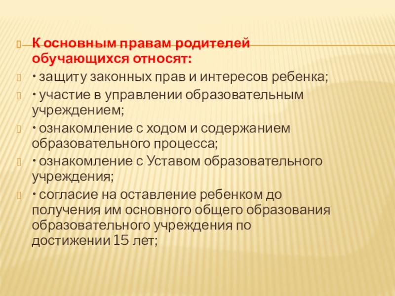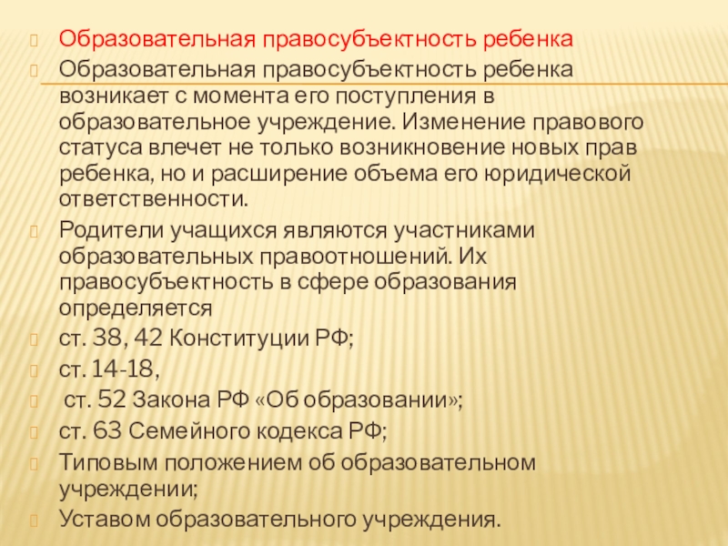 Родители учащихся являются участниками образовательных правоотношений. Их правосубъектность в сфере образования определяется