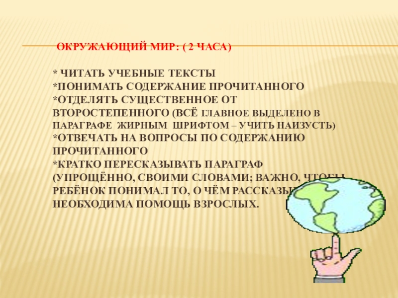 *Кратко пересказывать параграф (упрощённо, своими словами; важно, чтобы ребёнок понимал то, о чём рассказывает). Необходима помощь взрослых.