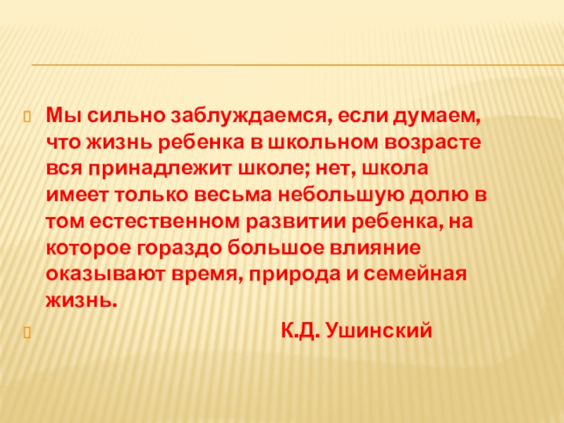 Слайд 2Мы сильно заблуждаемся, если думаем, что жизнь ребенка в школьном возрасте