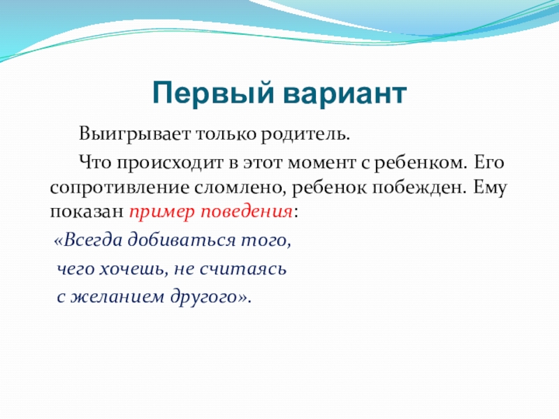И для родителя, и для ребенка возможны следующие варианты исхода конфликта