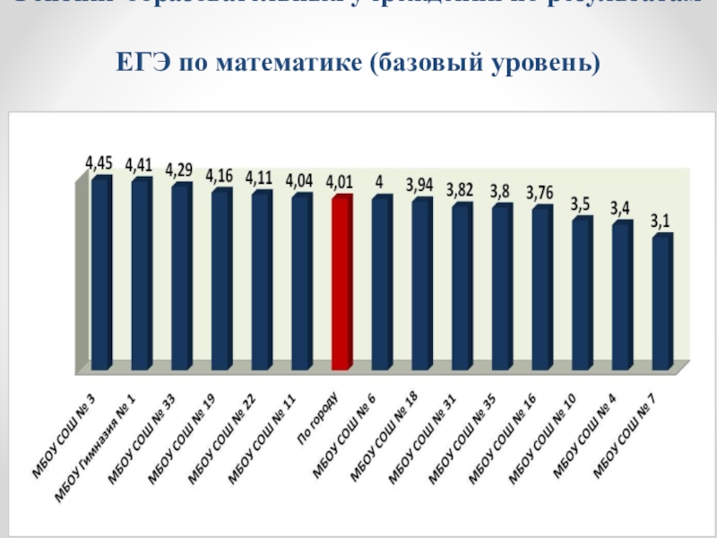 Слайд 25Рейтинг образовательных учреждений по результатам ЕГЭ по математике (базовый уровень)