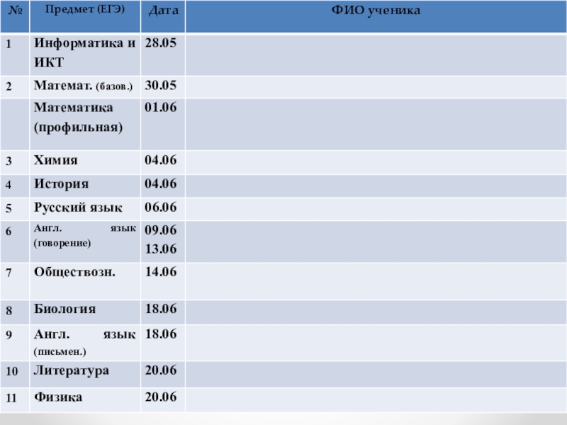 Предварительный выбор экзаменов в форме ЕГЭ.
