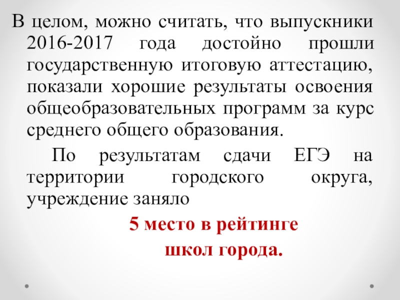 Слайд 26В целом, можно считать, что выпускники 2016-2017 года достойно прошли государственную
