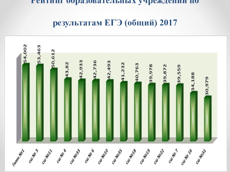 Слайд 27Рейтинг образовательных учреждений по результатам ЕГЭ (общий) 2017