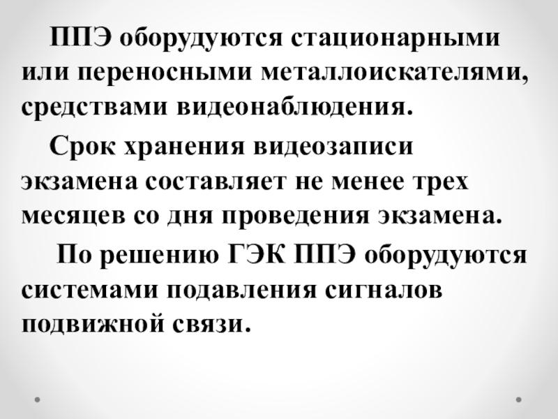 Слайд 8 ППЭ оборудуются стационарными или переносными металлоискателями, средствами видеонаблюдения.