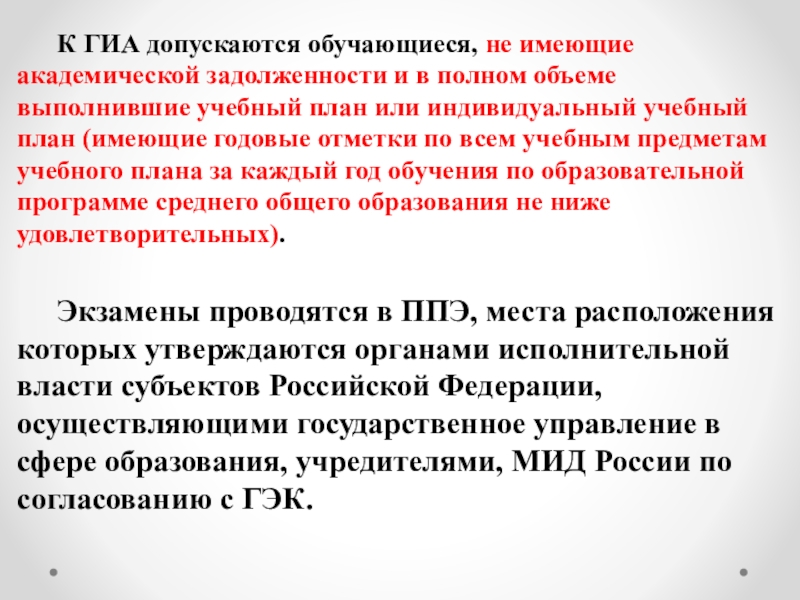 Слайд 6 К ГИА допускаются обучающиеся, не имеющие академической задолженности и в полном