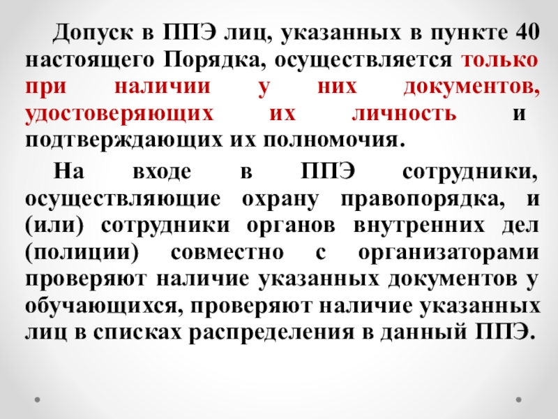 Слайд 11 Допуск в ППЭ лиц, указанных в пункте 40 настоящего Порядка,