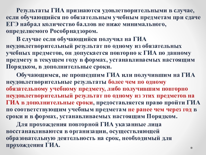 Слайд 19 Результаты ГИА признаются удовлетворительными в случае, если обучающийся по обязательным учебным