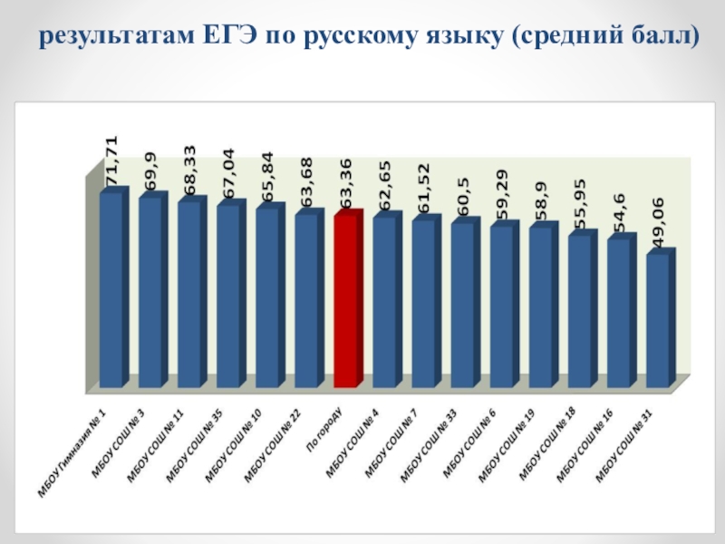Слайд 23Рейтинг образовательных учреждений по результатам ЕГЭ по русскому языку (средний балл)