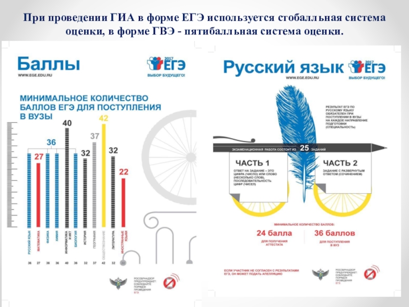 Слайд 16При проведении ГИА в форме ЕГЭ используется стобалльная система оценки, в