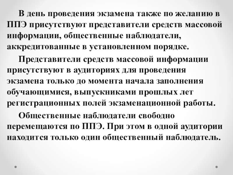 Слайд 10 В день проведения экзамена также по желанию в ППЭ присутствуют представители