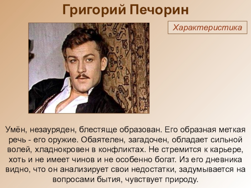 Печорин. Этому рассказчику легче его понять, чем Максиму Максимычу, однако и он многого не понимает и не принимает в Печорине.