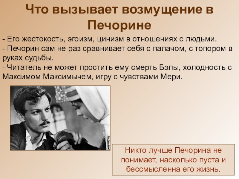 - Читатель не может простить ему смерть Бэлы, холодность с Максимом Максимычем, игру с чувствами Мери.