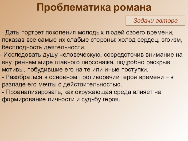 - Разобраться в основном противоречии героя времени – в разладе его мечты с действительностью.