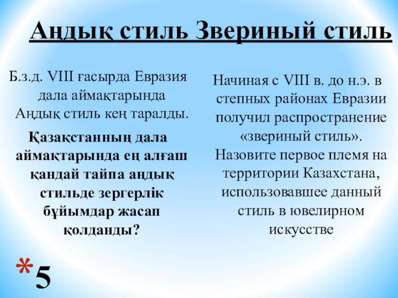 Начиная с VIII в. до н.э. в степных районах Евразии получил распространение «звериный стиль». Назовите первое племя на территории Казахстана, использовавшее данный стиль в ювелирном искусстве