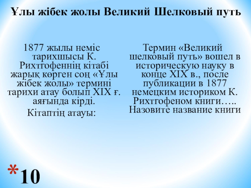 Термин «Великий шелковый путь» вошел в историческую науку в конце XIX в., после публикации в 1877 немецким историком К.Рихтгофеном книги….. Назовите название книги