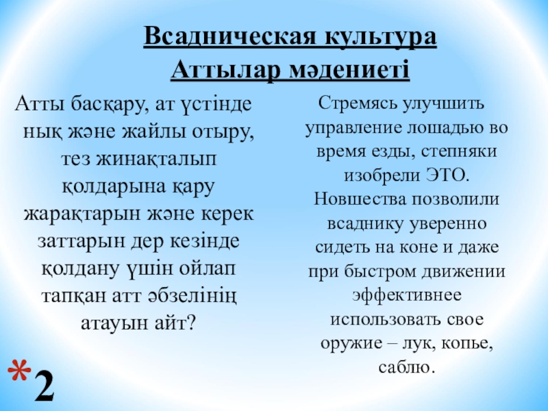 Стремясь улучшить управление лошадью во время езды, степняки изобрели ЭТО. Новшества позволили всаднику уверенно сидеть на коне и даже при быстром движении эффективнее использовать свое оружие – лук, копье, саблю.